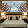 Airplane Flying over Big Buildings PrintedCanvas Prints (5 Pieces) Aviation Shop