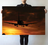 Beautiful Aircraft Landing at Sunset Printed Canvas Posters (3 Pieces) Aviation Shop