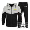 Vivid color-blocked zip hoodie and jogger set with soft fleece comfort and clean aviation styling.