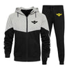 Vivid color-blocked zip hoodie and jogger set with soft fleece comfort and clean aviation styling.