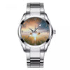 Airplane Flying over Big Buildings Designed Stainless Steel Band Watches