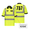 High-visibility reflective graphics on a breathable polo with classic 2–3 button placket.