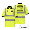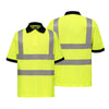 High-visibility reflective graphics on a breathable polo with classic 2–3 button placket.