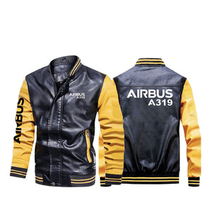 Airbus A319 & Text Designed Stylish Leather Bomber Jackets