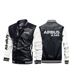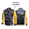 Airbus A340 & Text Designed Stylish Leather Bomber Jackets