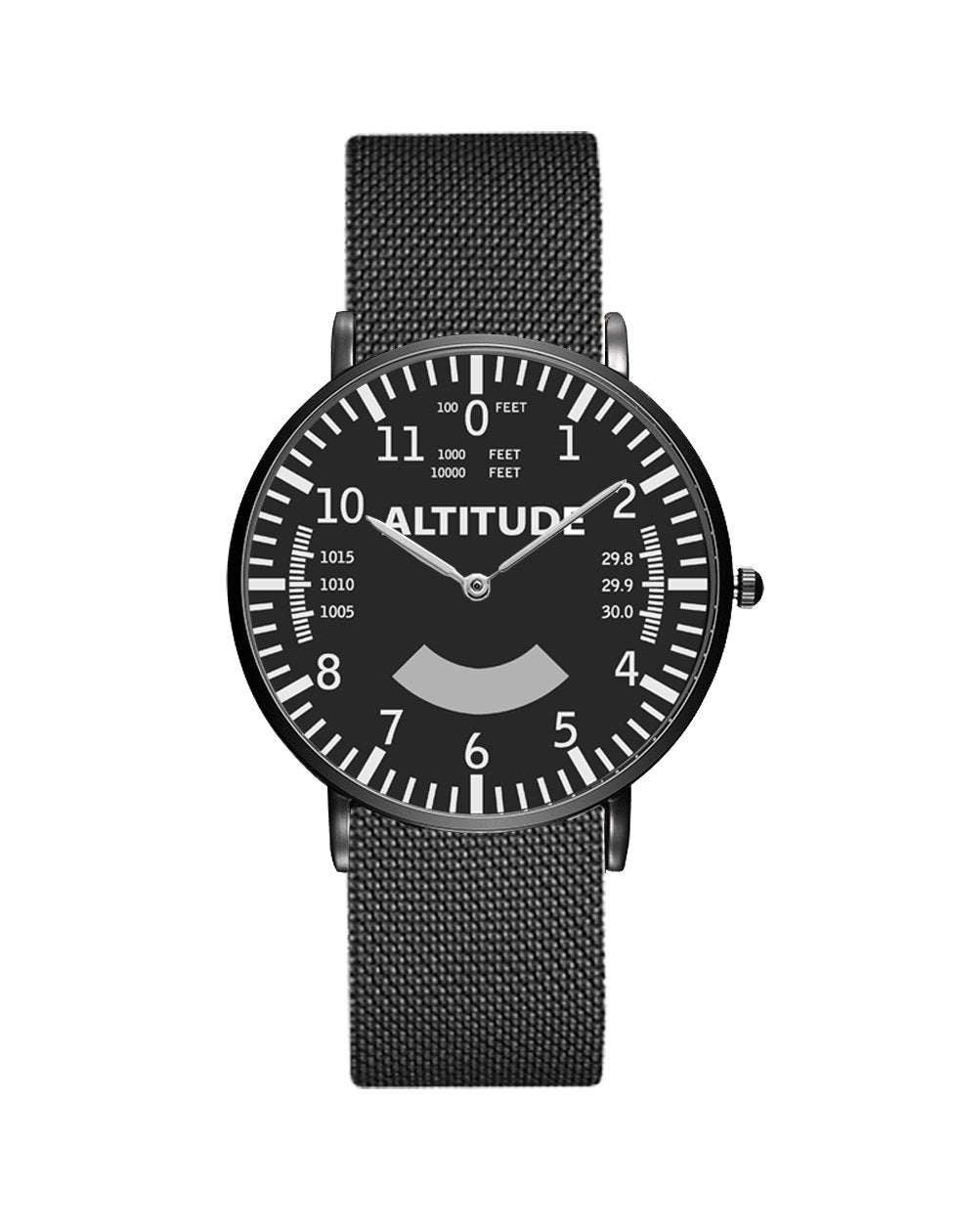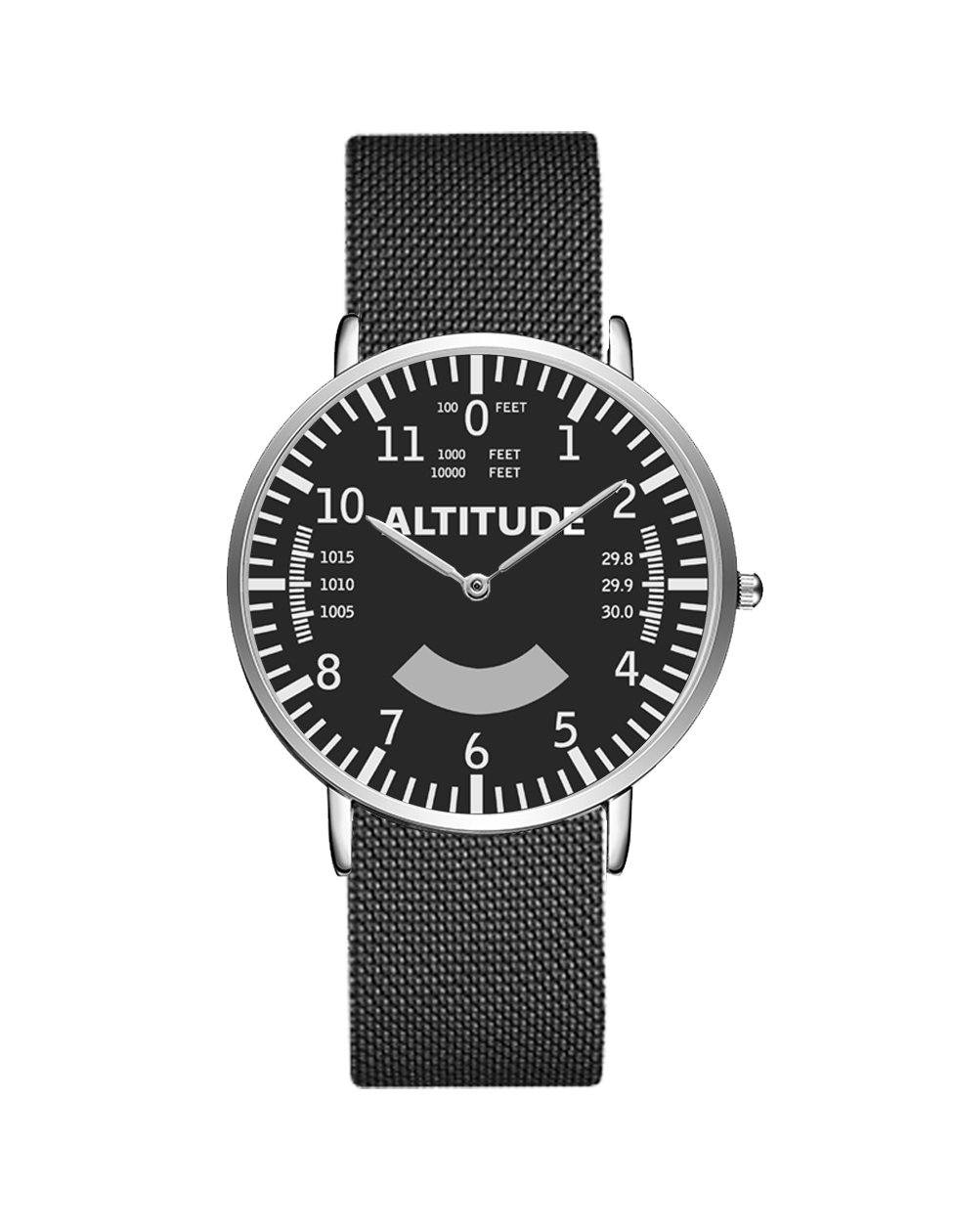 Airplane Instrument Series (Altitude) Stainless Steel Strap Watches Pilot Eyes Store Black & Stainless Steel Strap