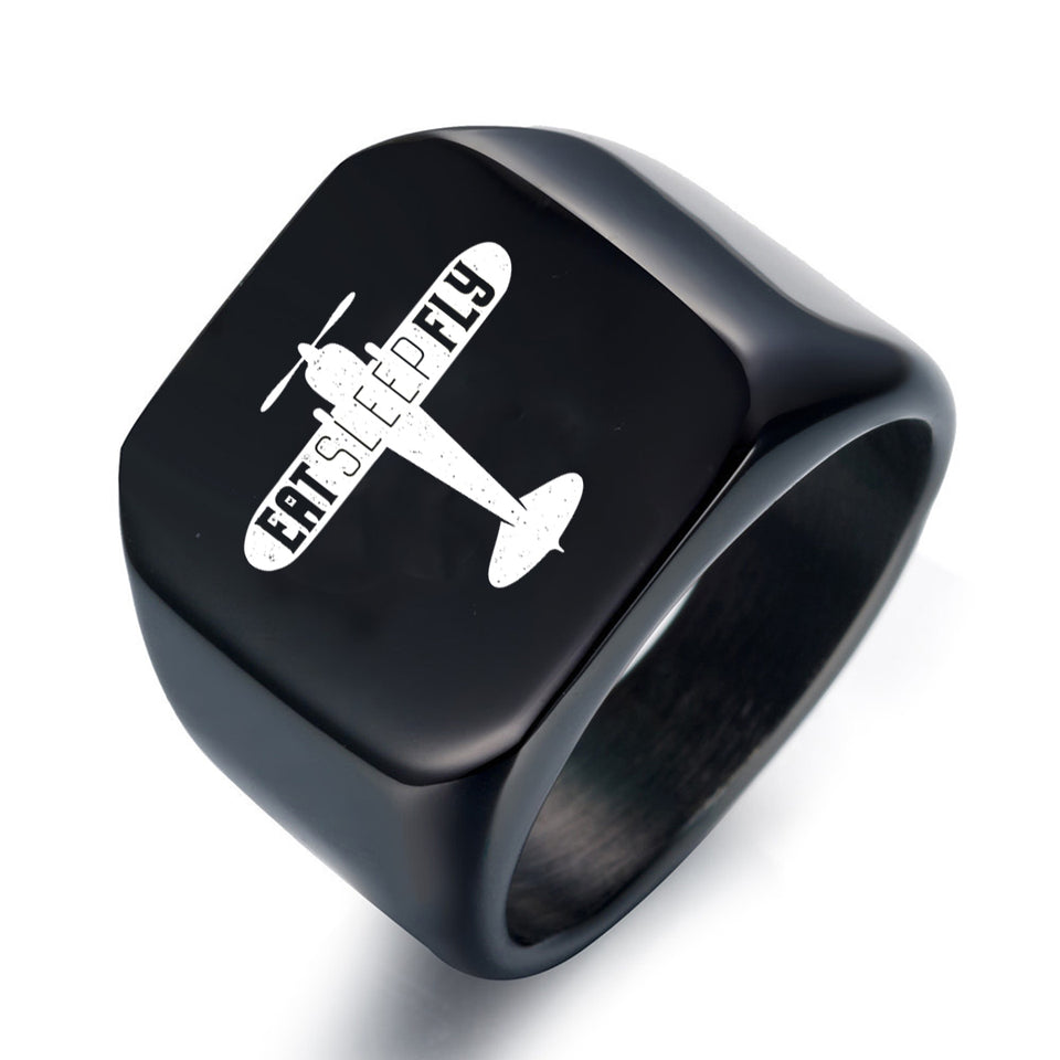 Eat Sleep Fly & Propeller Designed Men Rings