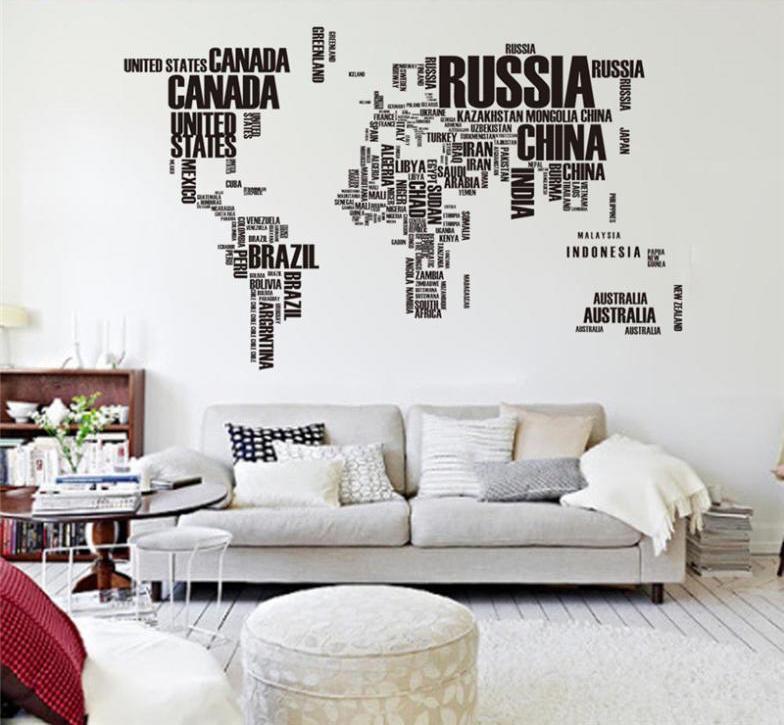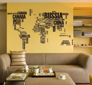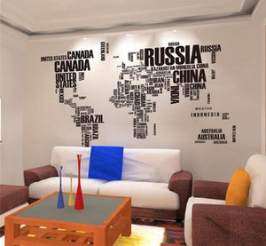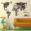 World Map With Letters Designed Wall Sticker